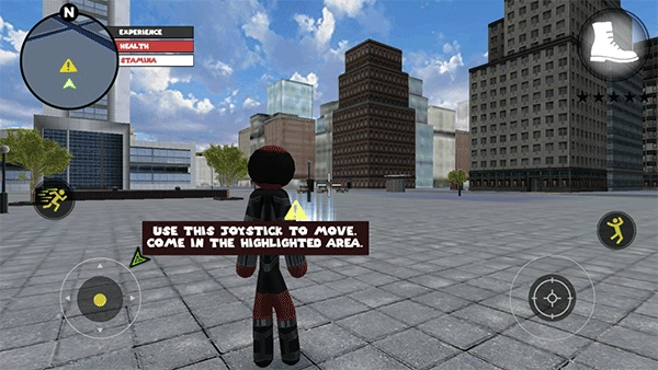 游戏界面中,左侧区域用于操控角色的移动与加速,右侧则对应绳索功能以及攻击(跳跃)、跳跃等动作指令。右上方清晰展示着武器切换选项,同时实时更新并显示角色的生命值与经验值状态。玩家可自由选择战斗策略,与其他帮派成员展开激烈对抗。在冲突过程中,击倒对手能够累积经验值,当击杀次数达到一定数量时,角色会被标记星级,此时警察及周边其他角色将对玩家发起更为猛烈的针对性攻击。玩家的核心目标在于设法在危机四伏的环境中生存下来,并成功击败敌对目标。