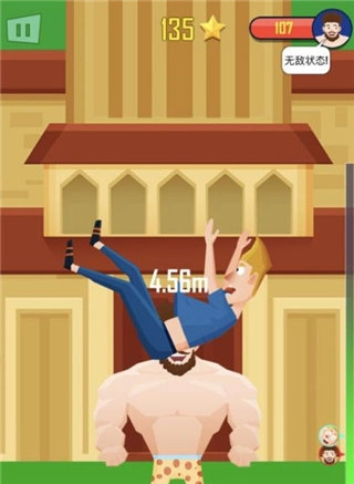 把人物抛出去会飞向空中,抛得越高得分就越高。抛出人物后,在他快要落地的时候再次点击屏幕,能让游戏人物再次被抛出去。累计抛得越高,得分就越高。
