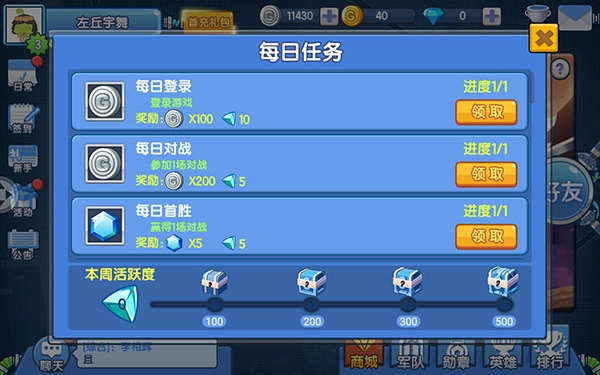 银币:通过签到或完成日常任务获得,可用于购买英雄和勋章碎片。