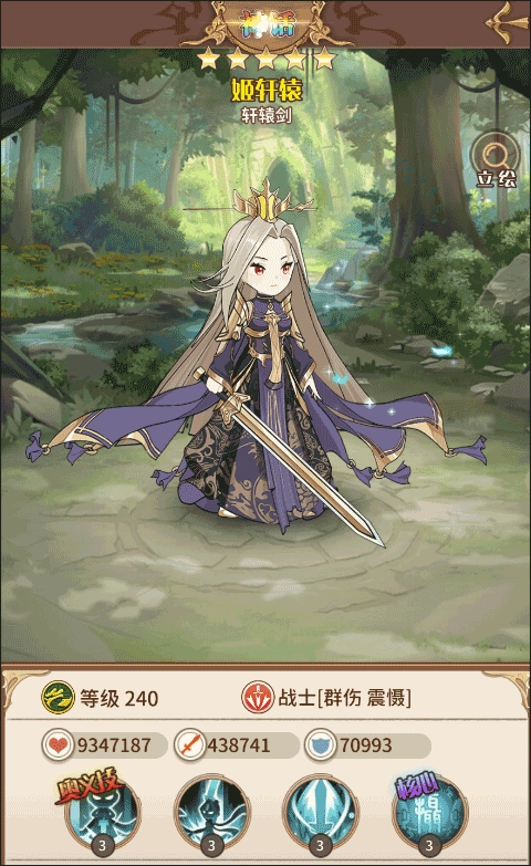这个角色的核心技能名为“剑魂”,每当她攻击敌方目标并触发暴击伤害时,自身攻击会提升1.5%,该效果最多可叠加至10层,同时有一定概率使目标陷入3秒的震慑状态。而她的奥义技“剑指山河”,能够对敌方全体造成高额伤害,并且会击倒攻击力低于自身的敌人。