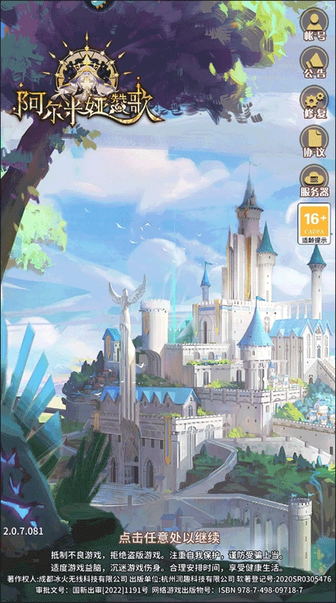 运行游戏后,在标题界面点击任意处继续;