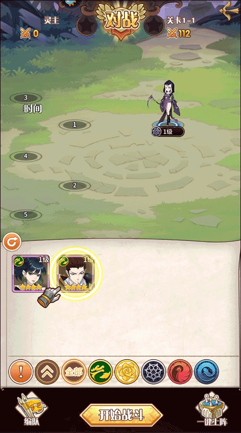 在对战界面点击人物使其上场,随后找到并点击“开始战斗”按钮选项。