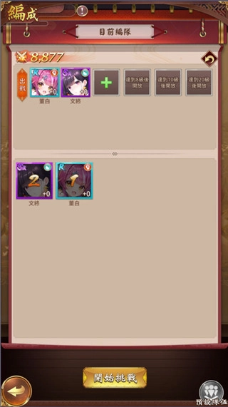 战斗开始前需根据当前的编队配置来安排英雄位置,游戏初期英雄数量相对有限,因此可以将所有可用英雄都部署上阵。