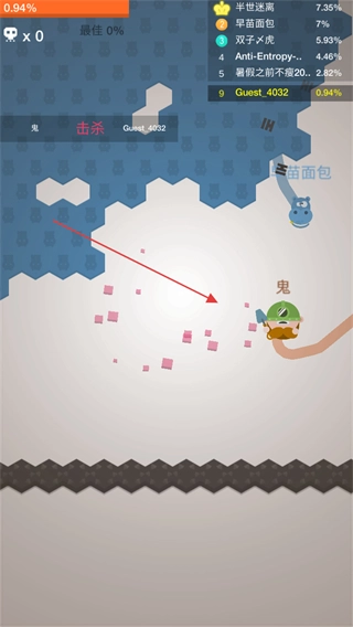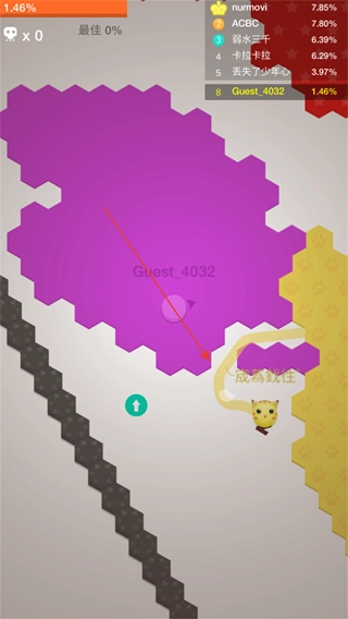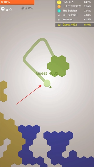 进入游戏后,你需要操控代表自身的Guest_4032圆圈,在六边形地图上通过移动来占领空白区域,以此扩大自己的势力范围。