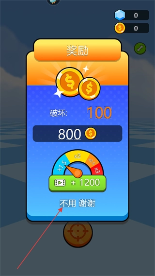 成功战胜敌人后,屏幕会弹出奖励界面,你可以选择领取奖励,也可以点击“不用,谢谢”跳过,继续进行游戏。