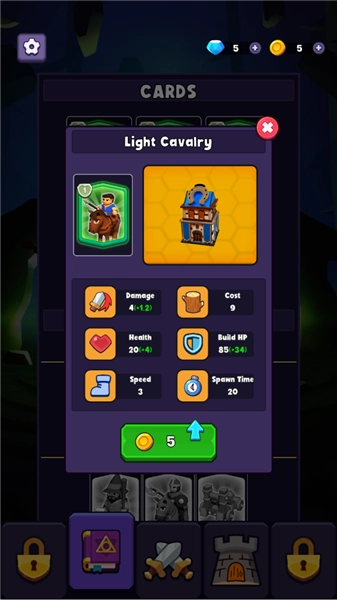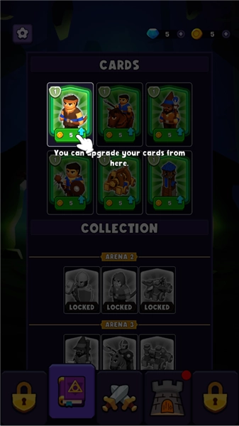 完成基础任务后,玩家将解锁卡牌手牌系统,此时可同时持有5张卡牌,需要对自身的手牌数量以及费用进行合理的管理。
