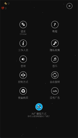 控制飞机的方式包括左右侧边触屏操作、手指触摸操控以及方向键控制这几种!