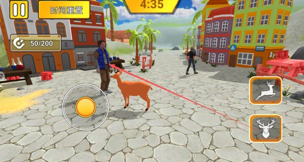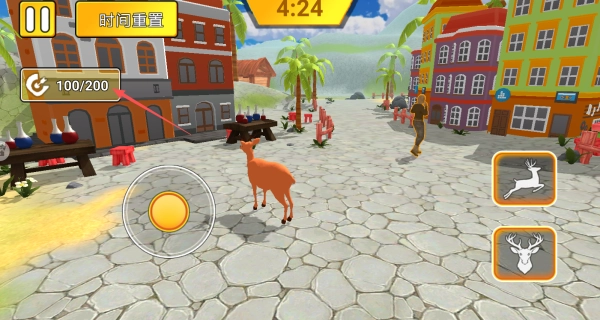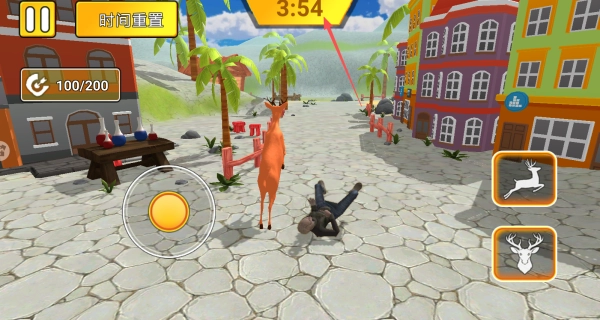 通过虚拟摇杆可以操控鹿哥的移动方向,点击冲撞按钮就能发动强力撞击,若长按该按钮还能进行蓄力,以此提升撞击的破坏力,从而撞飞更重的物体。