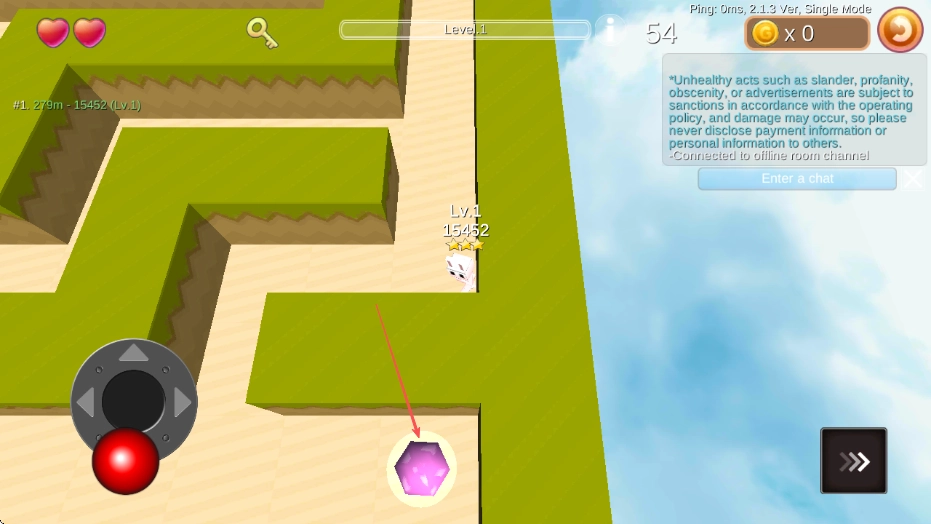 通过左边的虚拟摇杆来操控角色移动,在迷宫里探索前进。