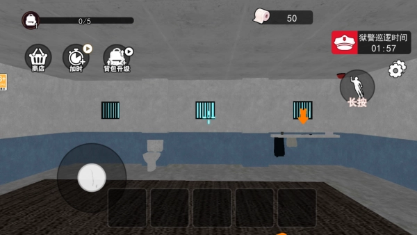 《监狱真实模拟》是一款以第一人称视角呈现的监狱逃脱题材游戏。在游戏中,你得设法找到合适的工具,通过挖掘地道来尝试逃离监狱。不过要注意,狱警会不定时地在监狱内巡逻,一旦你在他们巡逻时被发现,精心策划的逃脱计划就会宣告失败。所以,你需要巧妙利用一切可借助的有利条件,推进挖掘工作,完成逃离目标。