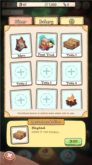 首先给咖啡馆建造一张餐桌,点击升级页面