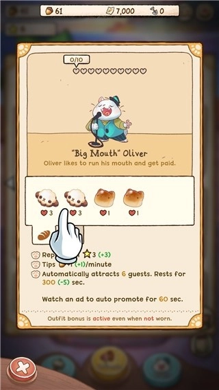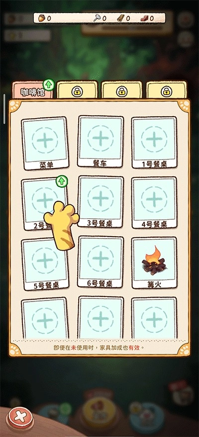 用途:增加咖啡馆的容纳能力,像“座位扩展卡”可以提升顾客的接待量,“厨房升级包”则能够解锁更多的烹饪器具。