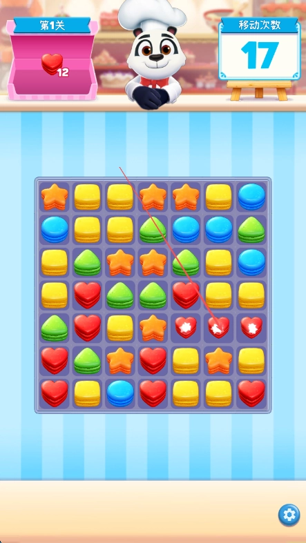 进入第一关后,留意左侧盒子里显示的收集目标——要收集12个爱心形状的曲奇。