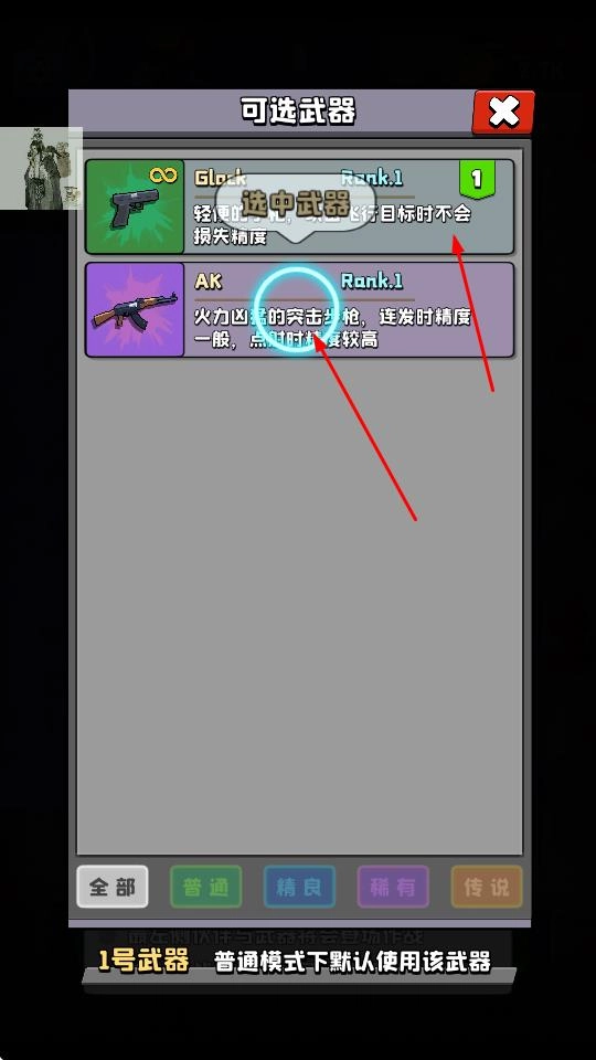 在武器选择界面,你可以挑选各式各样的武器,而每一种武器都具备独特的特性。