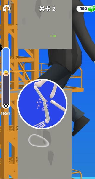 进入第一关后,控制火柴人移动到高楼顶部,接着让它从楼上坠落,导致骨骼碎裂。