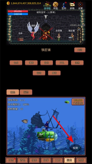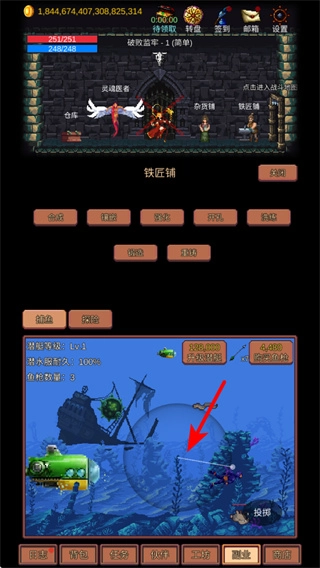 在铁匠铺的钓鱼玩法里,点击投掷按钮就能放出鱼钩,投掷的时候得好好把握时机,瞄准鱼群聚集的区域,这样才能提高钓鱼的成功率。