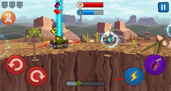 利用闪电之类的道具,辅助车辆行进和资源获取,提高游戏效率。