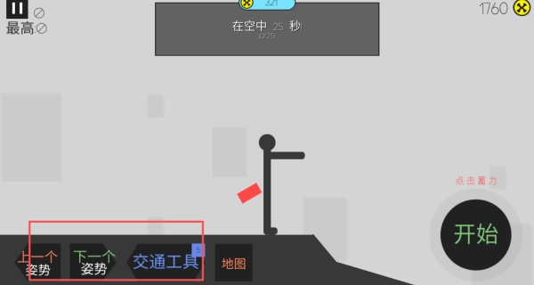 点击右侧的开始按钮并长按进行蓄力,松开按钮后,布娃娃就会向下坠落,摔跤过程也随之开启。
