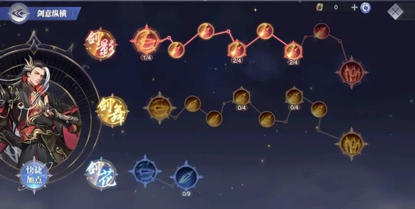 红色分支“剑影”的设计更偏向于PVE副本场景。该分支的核心点在于:首个节点需依靠3个专属魂骨的星级效果来解锁快速输出能力,这种效果与“先机”机制较为相似;随后是第4个节点的“极道·七杀束缚”,能触发领域效果;而第6个节点的“三相剑墟”,则可显著增强开启领域后的伤害输出。