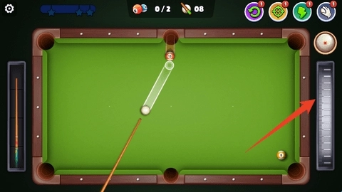 上下滑动屏幕左侧的球杆,即可调节击球力度,松开手指就能完成击球。