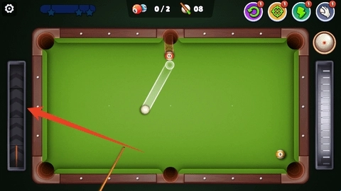 当角度较为刁钻时,不妨试试撞击球的侧面,借此给球施加一个侧向的力,让它能够顺利入袋。
