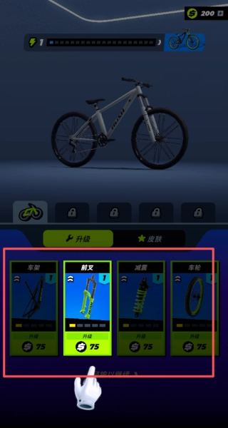 进入车辆升级界面后,建议优先对前叉这类关乎操控稳定性的部件进行升级,以此增强车辆在复杂地形下的通过性能。