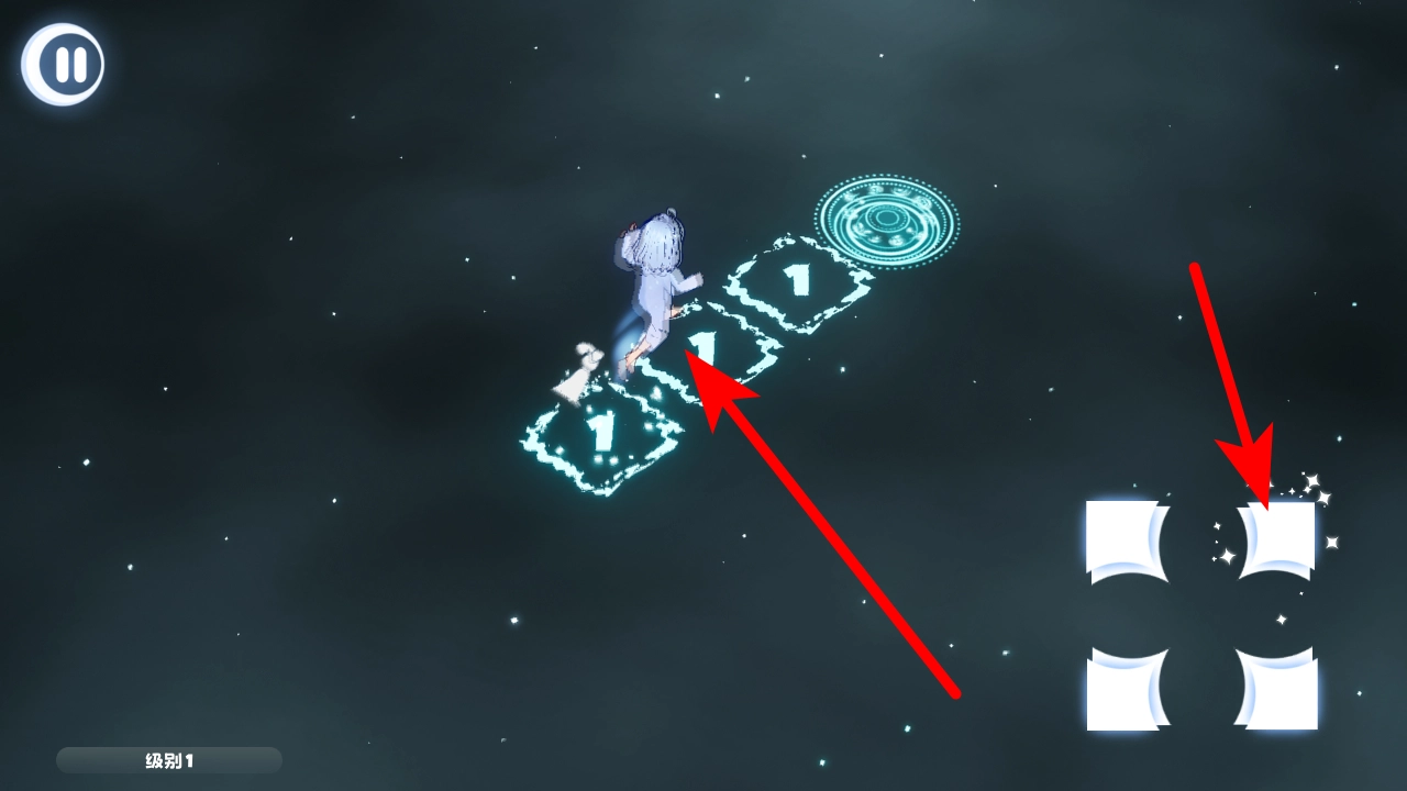 持续按动方向键操控角色移动,直到角色抵达终点处的发光圆环,即可触发通关动画。