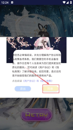 阅读相关协议:请您先仔细阅读用户协议和隐私政策,之后点击“同意”按钮即可继续。