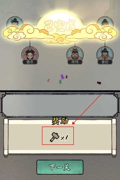 所有圆框正确填入就可以通关并获得锤子奖励啦