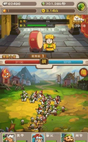 手速快的玩家可以点击屏幕上方的朝廷界面,让刘备持续磕头,以此获取源源不断的金币。尽管前期收入不算多,但随着刘备等级提升,金币收益会快速增加。财富积累的速度,取决于你的点击频率!
