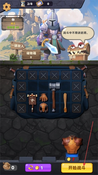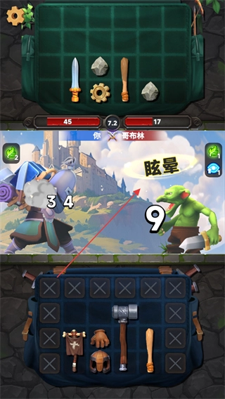 整理背包里的武器、防具之类的物品,点击开始战斗的按钮,和哥布林这类怪物展开对战。