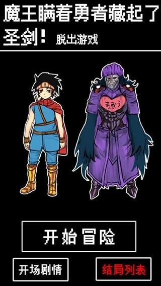 结局1:当进行第一关时,若勇者未购置武器,只要消灭最后一只史莱姆就能达成该结局。