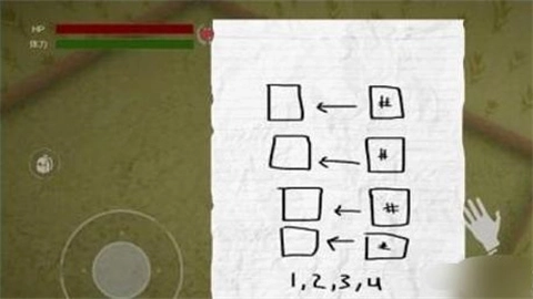1、进入游戏后,初始房间内找不到登录密码,需要前往电梯旁的小角落寻找一张纸条。这张纸条的内容提示#号立柱上的数字1、2、3、4,就是登录密码的顺序。