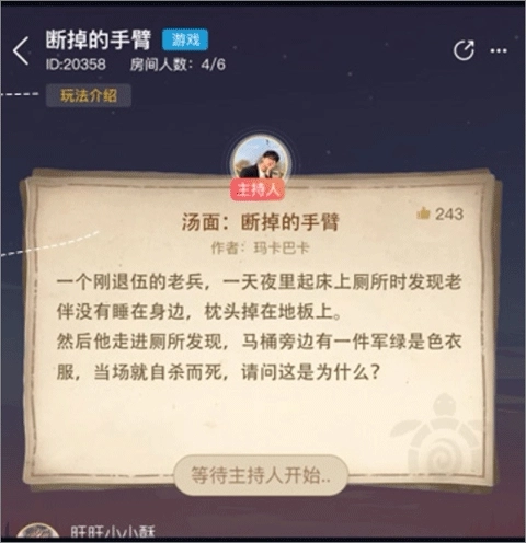 5.若有玩家成功推理出情景故事的全貌,主持人将终止当前局游戏,并公布汤底内容,玩家可通过查看汤底来对本局游戏进行复盘分析。