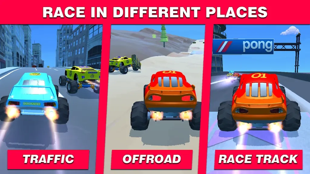 怪物卡车赛车游戏简直燃爆了!玩家可以驾驶由超级跑车改装而成的怪物卡车,沉浸式体验高辛烷值赛车带来的极致快感。游戏内设有多款超酷的创新模式:交通竞赛需在车流量密集的道路中灵活穿梭;越野挑战要在崎岖不平的地形上飞速驰骋;冠军联赛能与各地顶尖玩家同台竞技;无尽驾驶则可让你畅享无间断的驾驶乐趣。每种模式的规则与目标各有不同,任你随心选择!