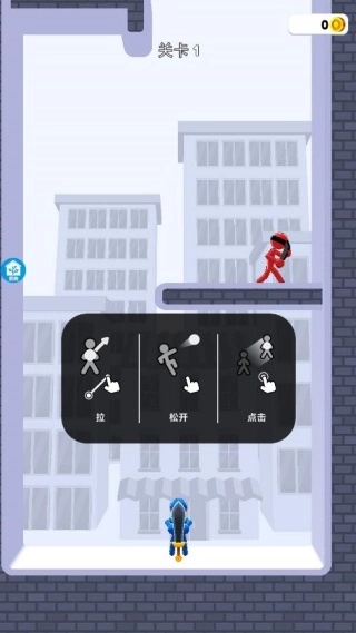 1、长按屏幕以固定小蓝人的位置,通过左右滑动来精准调整武器的攻击角度,松开手指即可发射武器击倒敌人。