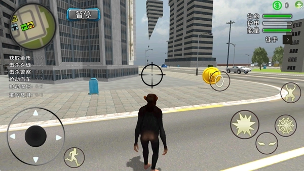 3、能够借助绳索实现飞行,猴子角色属于皮肤类设定,还可以通过使用道具来消灭敌人。