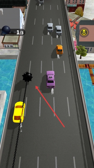 策略撞击技巧:通过触屏滑动来控制铁球的方向与加速,提前预判车辆的行驶路线进行拦截,借助下坡地形实现加速冲击,利用连续撞击的组合来提高连击得分。