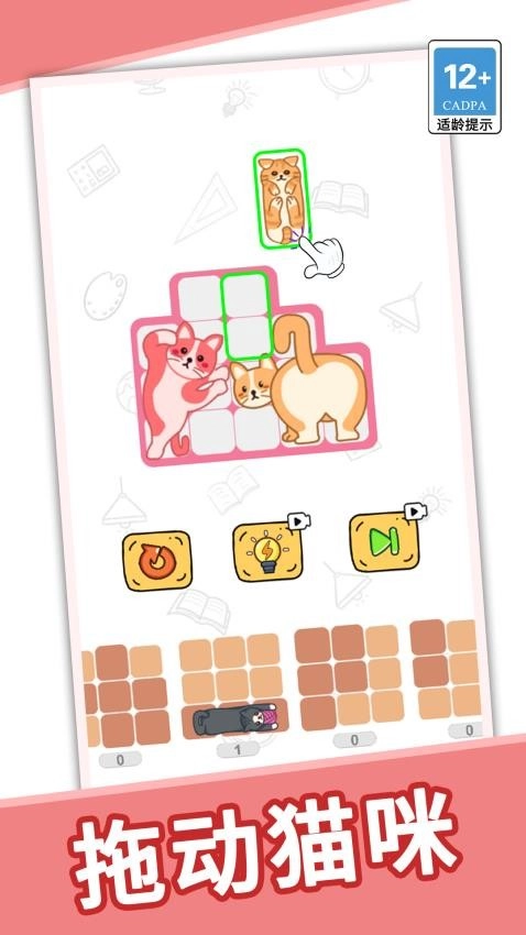 可以用拖拽的方式把猫咪移到合适的位置,还能自由旋转来调整它的朝向;在部分特殊关卡里,还得留意猫咪的姿势和表情是否搭配得当。