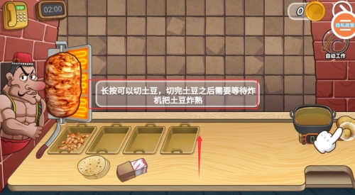 按照系统指引完成基础操作的教学环节,熟悉烹饪、服务等核心玩法的机制,以及界面功能的布局情况。