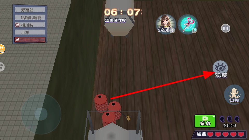点击观察视角按钮后,进入观察状态能更全面地查看周围环境,及时掌握追捕者或其他玩家的动向,从而更方便制定应对策略。