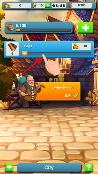 通过滑动操作来售卖资源,这一步是资源转化的核心环节。滑动后,木材等资源就能变成可使用的资金,这些资金可以用来扩大生产规模,还能解锁新的建筑。