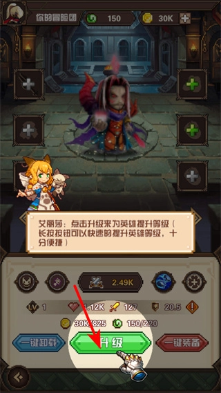 在升级界面点击“升级”按钮即可提升英雄等级,升级过程中需要消耗相应的资源;英雄等级提升后,其攻击、防御等各项属性都会得到增强,从而为后续的战斗提供有力支持。