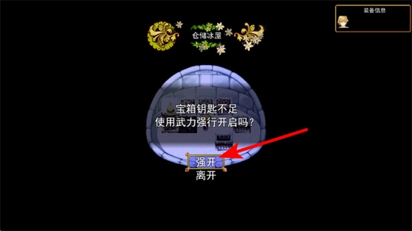当宝箱界面弹出钥匙不足的提示时,点击“强开”按钮是获取宝箱资源的关键操作;选择该操作后,将以武力方式开启宝箱,从而获得道具奖励,助力资源积累与进度推进。