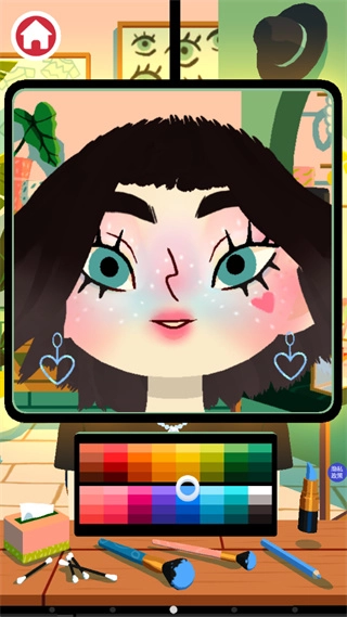 游戏玩法自由性很大的,我们随意的选择喜欢的进行试玩,游戏中的人物还会撒娇这个也是比较有趣的。 要化妆的话直接点击桌面上的道具,找到眼影盘就可以化妆了。