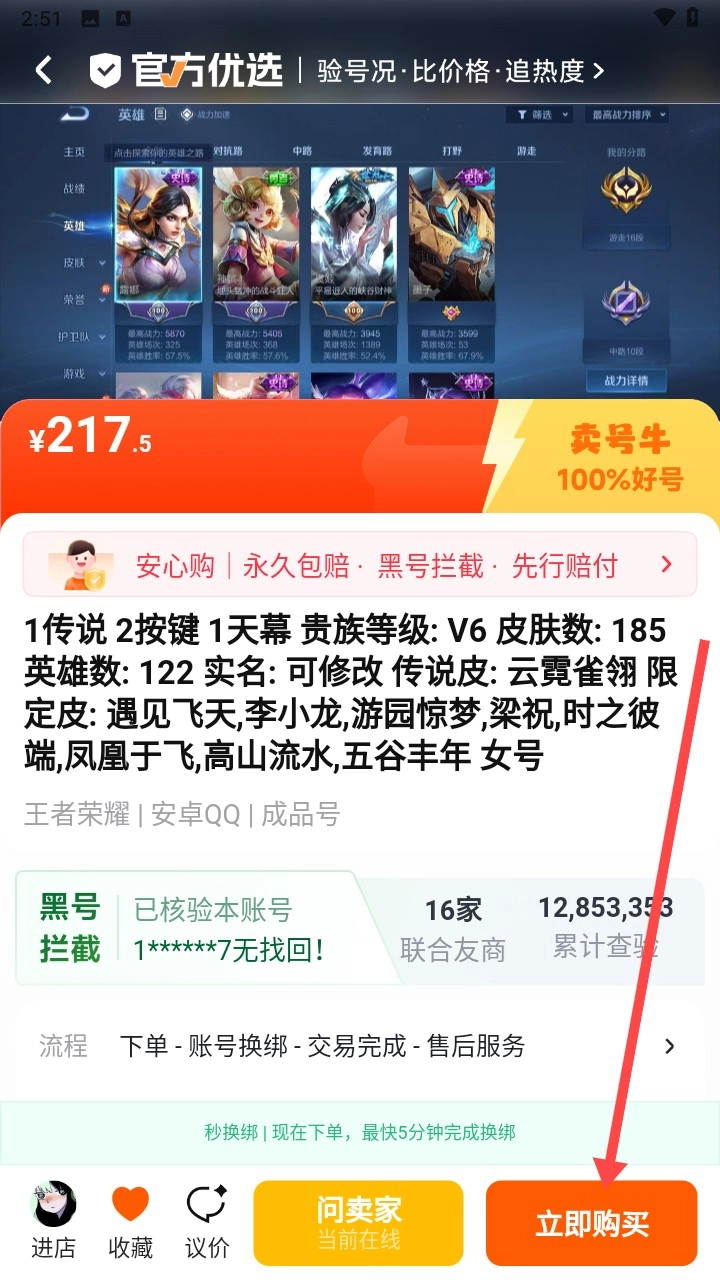 根据你的需要任意选择一款你所需要的游戏账号,直接点击“立即购买”即可。