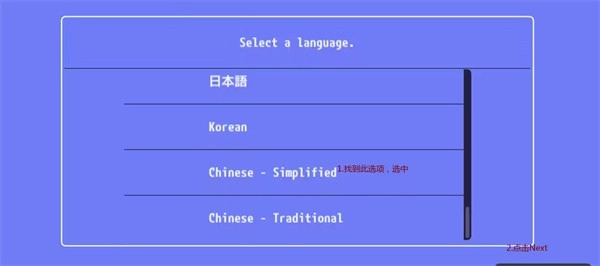 打开后,向下滑动页面,找到【Chinese-Simplified】(简体中文),点击页面右下方的【Next】(下一步)。
