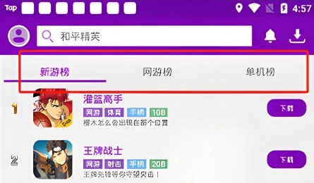 在排行模块中为玩家们提供了新游榜、网游榜、单机榜;