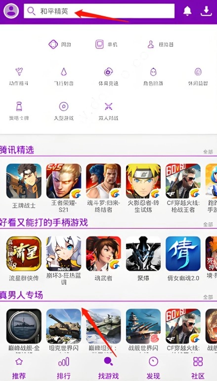 支持游戏搜索功能,玩家输入关键词即可快速找到目标游戏。