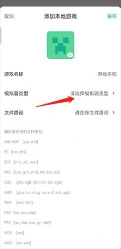 先填写你想玩的游戏叫什么,接着从列表里挑一个合适的模拟器,最后指定一下游戏文件所在的位置,这样就完成啦。
